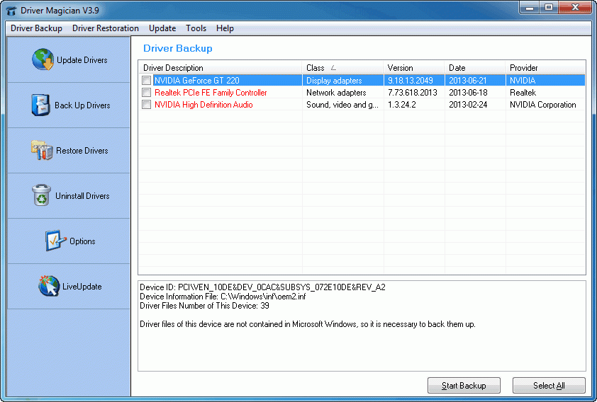 Driver Magician Lite (โปรแกรม Driver Magician สำรองไดร์เวอร์ ฟรี ) : สำหรับโปรแกรมที่มีชื่อว่า โปรแกรม Driver Magician Lite เป็นโปรแกรม แบ็คอัพไดร์เวอร์ ใช้ฟรี สำหรับคนที่ต้องทำการล้างเครื่องเพื่อทำการฟอแมตเครื่องคอมพิวเตอร์สุดรักอยู่บ่อยๆ มีหลายครั้งที่คงรู้สึกรำคาญกับการต้องมาวิ่งนั่งหาไดร์เวอร์ (Driver) ของอุปกรณ์ต่างๆ อยู่เสมอใช่มั้ยล่ะ เมื่อมีโปรแกรม Driver Magician Lite แบ็คอัพไดร์เวอร์ ตัวนี้แล้วทำให้ชีวิตคุณ ง่ายขึ้นอีกเยอะเลย เพราะมันจะช่วยทำการสำรองข้อมูลไดร์เวอร์ แบ็คอัพไดร์เวอร์ ของคุณ เก็บแยกไว้ต่างหาก เมื่อคุณจะเรียกใช้ขึ้นมาก็แสนง่าย เพียงพริบตาจริงๆ โปรแกรม Driver Magician Lite จัดว่าเป็นโปรแกรม แบ็คอัพไดร์เวอร์ ที่น่าใช้อีกตัวหนึ่ง แนะนำว่าดาวน์โหลดติดเครื่องไว้ ได้ใช้ประโยชน์อย่างแน่นอน