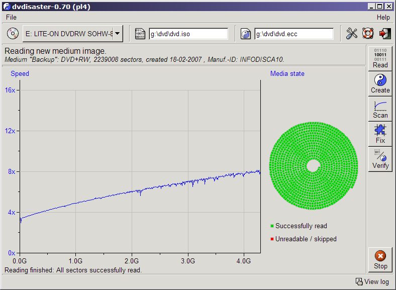 This program is called "dvdisaster". It is a computer program aimed to enhance data survivability on optical discs by creating error detection and correction data, which is used for data recovery. dvdisaster works exclusively at the image level. This program can be used either to generate Error-Correcting Code (ECC) data from an existing media or to augment an ISO image with ECC data prior to being written onto a medium.