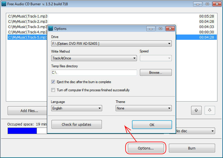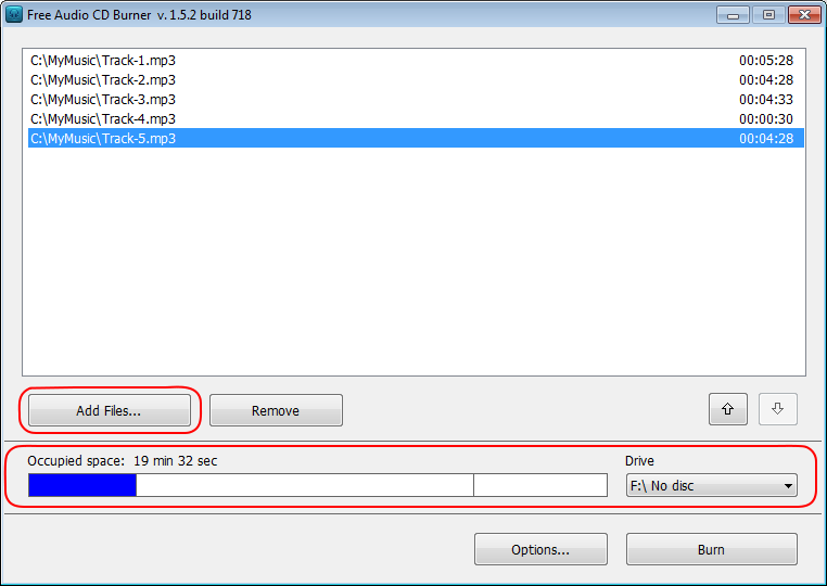 รูปภาพ Screenshot ประกอบการใช้งานของโปรแกรมไรท์เพลง อัดเพลง Free Audio CD Burner เพิ่มเติม