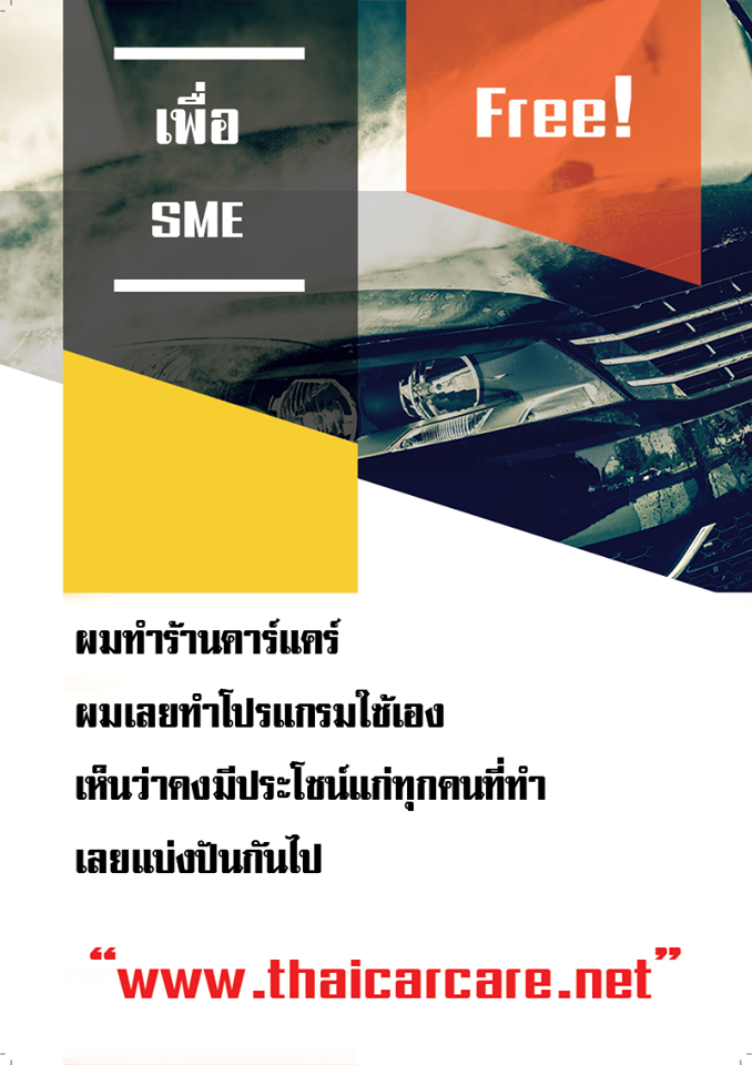 Note : สำหรับ โปรแกรม CarCare Management Systems (ธุรกิจคาร์แคร์) ตัวนี้ทางผู้พัฒนา โปรแกรม (Program Developer) เขาได้แจกให้ ทุกคนได้สามารถนำไปใช้กันได้ฟรีๆ (FREE) โดยที่คุณไม่ต้องเสียค่าใช้จ่ายใดๆ ทั้งสิ้น