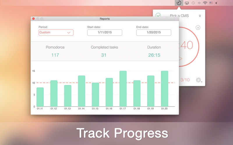 It’s a surprisingly effective way to retain motivation and focus. Create tasks, configure breaks and track your progress throughout the day, week or custom period.
