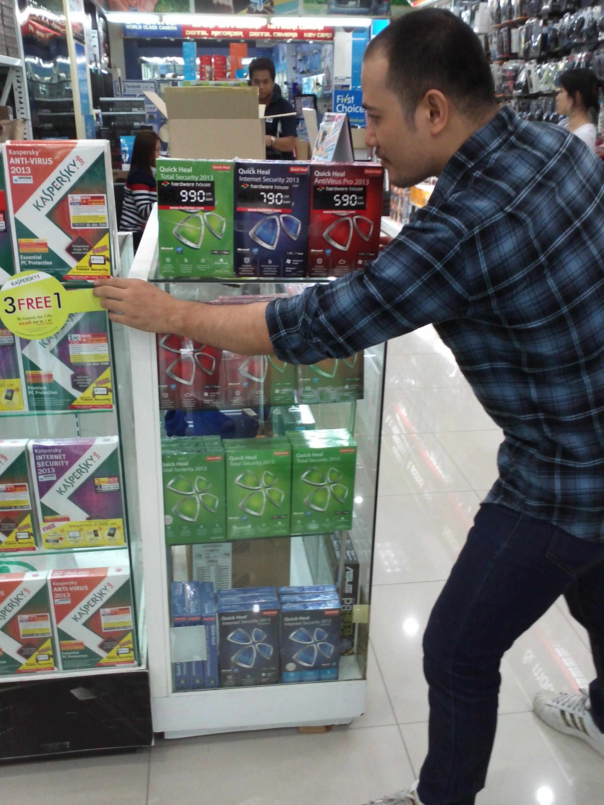 ราคาขายในเมืองไทย 590 บาท เองนะคะ ถูกกว่าที่ลงไว้ในเว็บหลายร้อยเหมือนกัน แต่ตัวที่รุ่งอรุณซื้อไปใช้คือ ตัว Total Security เป็นกล่องสีเขียว ราคา 990 บาท น้องที่ขายของแนะนำว่าเหมาะกับคนที่ใช้เน็ตเล่นเว็บ แล้วมี feature ที่ใช้ scan มือถือ ด้วยนะคะ ส่วนตัวรู้สึกว่าคุ้ม เลยลองซื้อมาใช้ดู ใช้แล้วก็ไม่ผิดหวังจริงๆ software ตัวนี้ แนะนำจริงๆ ค่ะ