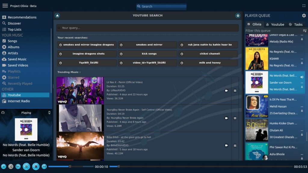 Olivia is an open-source music player designed for users of the Linux operating system. It emphasizes a visually appealing user interface and intelligent capabilities for discovering and managing music. The application is built using the Qt framework as its core for developing the graphical user interface (GUI), and it integrates other open-source tools such as MPV, youtube-dl, LibTag, and coreutils to support playback and handling of various media files.