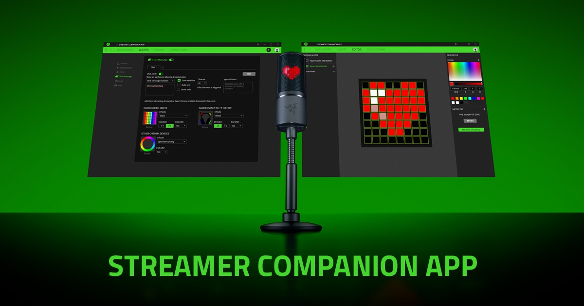Streamer Companion App (โปรแกรมควบคุมอุปกรณ์สตรีมมิ่งของ Razer) : สำหรับโปรแกรมนี้มีชื่อว่า โปรแกรม Streamer Companion App เป็นโปรแกรมสำหรับควบคุมและปรับแต่งอุปกรณ์สตรีมมิ่งจากค่าย Razer ที่ออกแบบมาสำหรับสตรีมเมอร์และผู้ใช้งานอุปกรณ์สตรีมมิ่งอย่าง ไมโครโฟน Razer Seiren, หูฟัง Razer Kraken ที่ถูกออกแบบมาโดยเฉพาะในการสร้างสรรค์ความบันเทิงให้แก่ผู้ชม ปรับแต่งรูปภาพอิโมจิ เปลี่ยนแสงสี สื่ออารมณ์แก่ผู้ชมได้มากกว่าที่เคย แถมยังรองรับการทำงานร่วมกับอุปกรณ์ Razer เกมมิ่งเกียร์อื่นๆ ที่รองรับ Chroma RGB อีกด้วย
