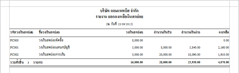 รายงานยอดคงเหลือเงินสดย่อย (Petty Cash)