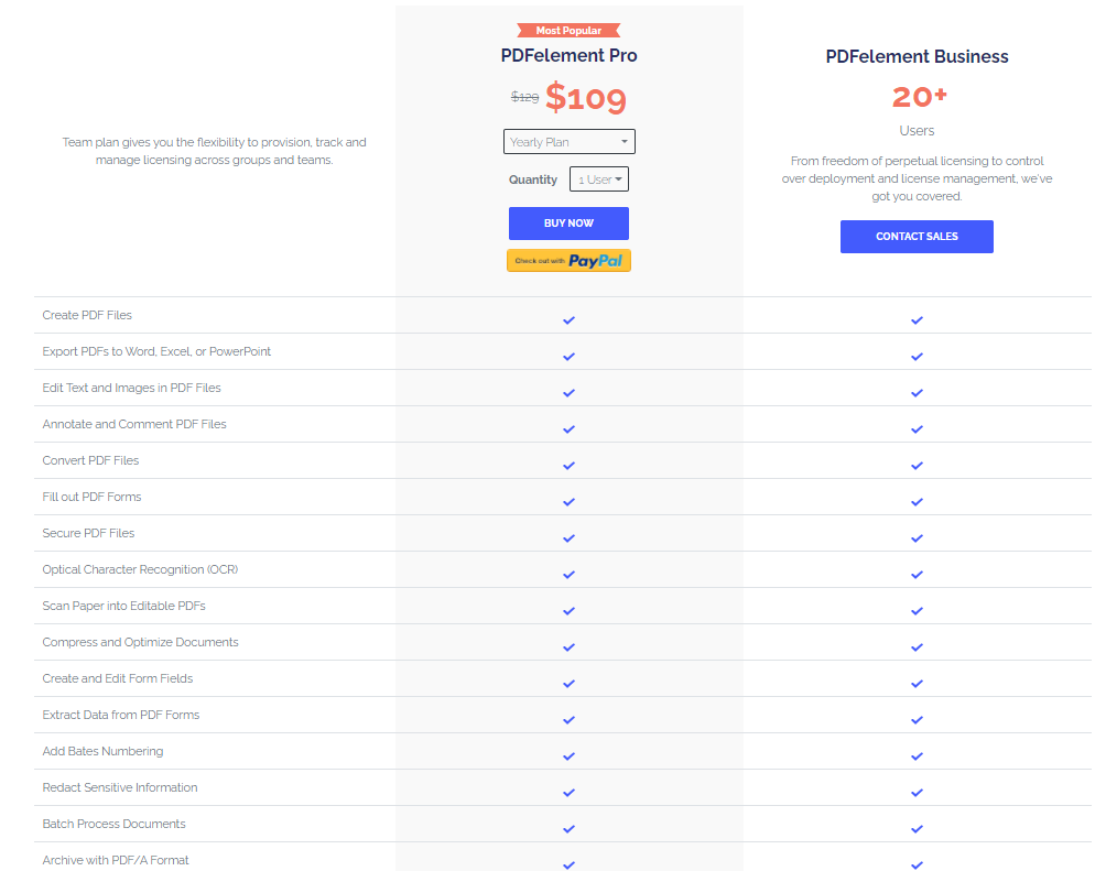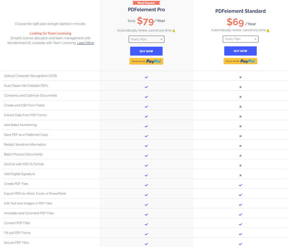 โปรแกรม Wondershare PDFelement มาพร้อมกับคุณสมบัติที่ต่างกันในแต่ละเวอร์ชัน ซึ่งหากคุณอยากใช้แบบเต็มๆ สามารถเลือกได้ว่าจะซื้อไลเซนส์แบบใช้งานส่วนบุคคล (Individuals) การใช้งานในธุรกิจ (Team) หรือการใช้งานในสถานศึกษา (Education) ใครที่มองหาโปรแกรมสำหรับจัดการไฟล์ PDF ได้อย่างมีประสิทธิภาพ ในราคาที่เหมาะสม โปรแกรมนี้ก็ตอบโจทย์ความต้องการสำหรับผู้ใช้งานในรูปแบบต่างๆ ได้เป็นอย่างดี
