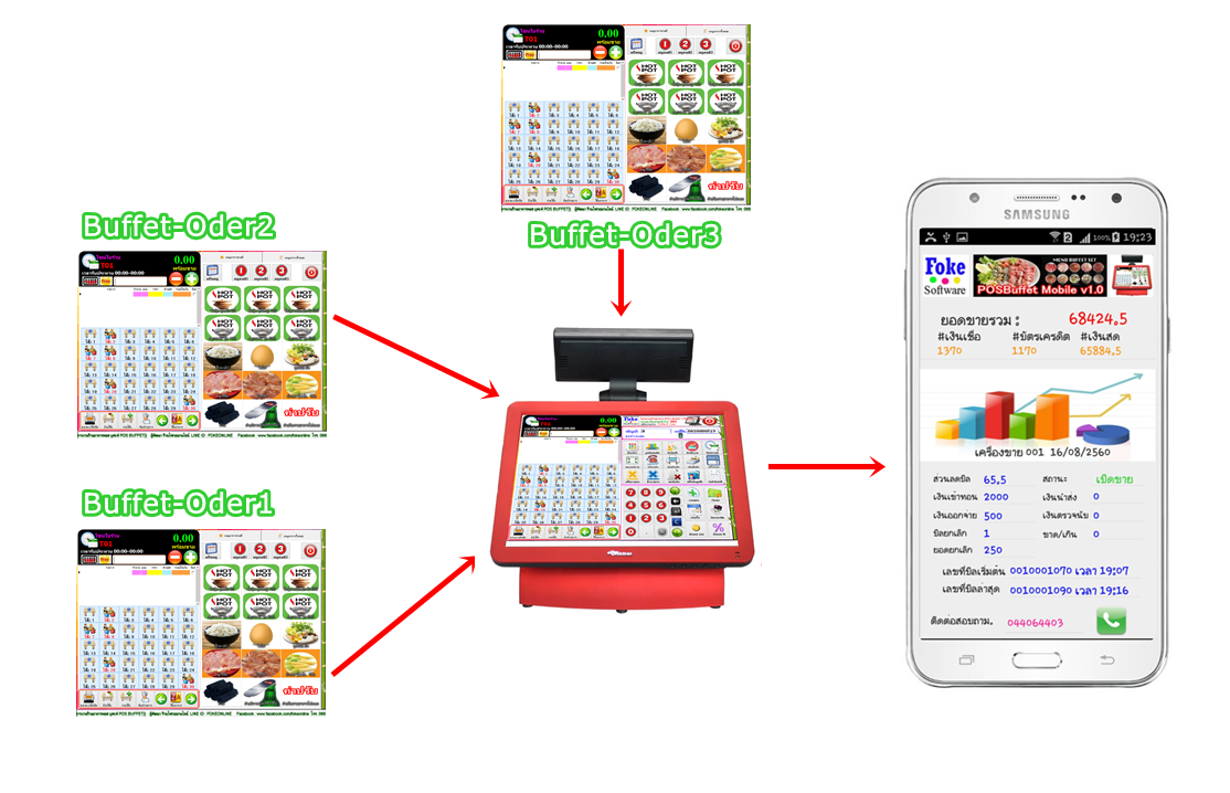 POS Buffet (โปรแกรม POS Buffet ร้านอาหาร หมูกระทะ จิ้มจุ่ม บุฟเฟ่ต์) : สำหรับโปรแกรมนี้มีชื่อว่า โปรแกรม POS Buffet เป็น โปรแกรมขายหน้าร้าน ประเภท โปรแกรมร้านอาหาร ที่ถูกสร้างมาโดยทีมผู้พัฒนาคนไทย จาก Foke Online Software เพื่อใช้ควบคุม ดูแล และบริหารงานภายในร้านอาหารประเภทบุฟเฟ่ต์ (Buffet) โดยเฉพาะ เหมาะสำหรับกลุ่มร้านอาหารที่อยู่ในรูปแบบของ ร้านหมูกระทะ หรือ ร้านจิ้มจุ่ม ร้านชาบู เป็นต้น ซึ่งธุรกิจร้านอาหารประเภทนี้ กำลังเป็นที่นิยม และ แพร่หลายอย่างมากในปัจจุบัน