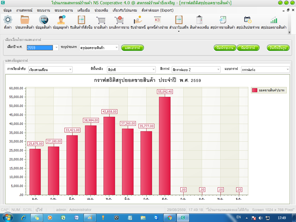 ภาพตัวอย่างการรายงานกราฟสถิติยอดขายของ โปรแกรม NS Cooperative