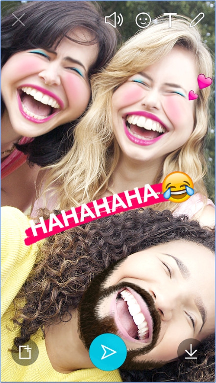 This app is called "SNOW". Send fun video messages to friends on SNOW! Take videos with hilarious face effects and send them to your friends instantly. You can respond to snaps from friends with texts and animated GIFs as well. LIVE makes sharing your moments with friends easy, speedy and fun.