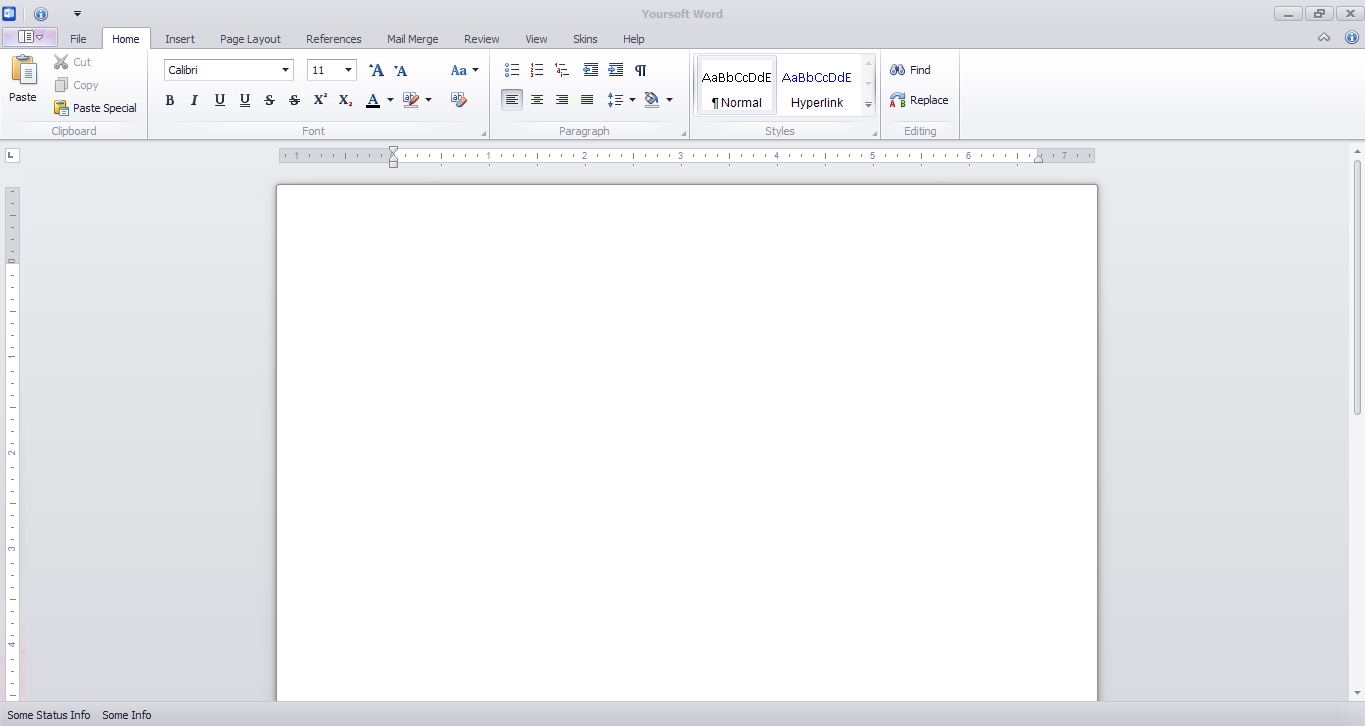 This program is called "Yoursoft Word". It is a lean yet full-featured word processor. It features a familiar-looking interface, basic character formatting, paragraph alignment, a spell checker, interactive rulers and tabs, styles, unlimited undo/redo, find and replace, and image support.