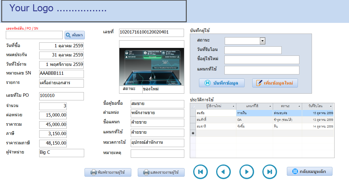 รูปตัวอย่าง Screenshot การใช้งานภายใน โปรแกรมบันทึกรายการทรัพย์สิน Assets Live