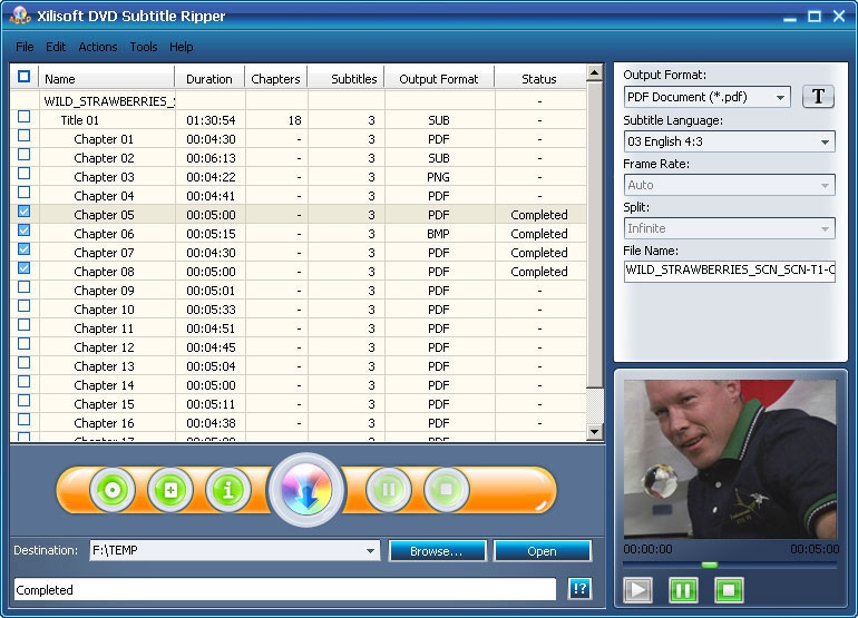 รูปตัวอย่างการใช้งาน ของ โปรแกรม Xilisoft DVD to Subtitle Converter