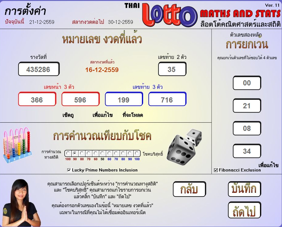 This program is called "Thai Lotto Maths and Stats". The first and actually the only Statistical Number Picker developed specifically for the Thai Lottery! Based on previous draws.