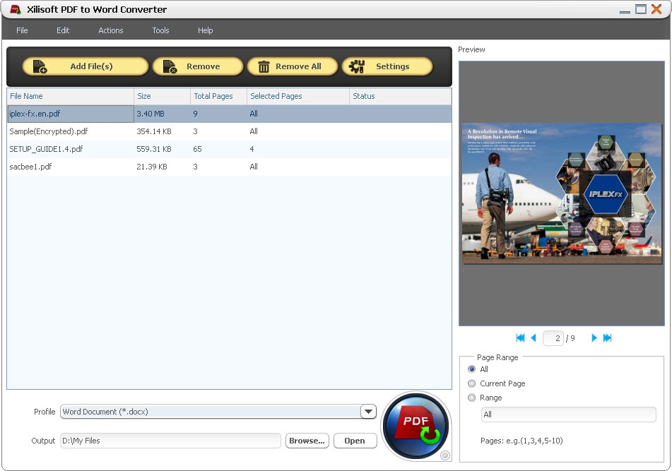 Xilisoft PDF to Word Converter (โปรแกรมแปลงไฟล์ PDF เป็น Word) : สำหรับโปรแกรมนี้มีชื่อว่า โปรแกรม Xilisoft PDF to Word Converter มันจัดเป็น โปรแกรมแปลงไฟล์ ที่ช่วยให้คุณสามารถแปลง ไฟล์เอกสาร PDF ให้กลายเป็นไฟล์ Word ได้อย่างง่ายดาย โดยที่คุณไม่จำเป็นต้องมีโปรแกรม Adobe Reader สำหรับอ่านไฟล์ PDF ก็สามารถแปลงไฟล์ได้อย่างง่ายดาย รองรับการบันทึกไฟล์ DOC ไฟล์ DOCX และ ไฟล์ RTF ได้อย่างรวดเร็ว อีกทั้งยังสามารถกำหนดหน้าเอกสารที่ต้องการแปลงไฟล์ได้อีกด้วย เพียงเท่านี้ คุณก็สามารถใช้งานไฟล์เอกสาร แก้ไข ผ่านโปรแกรม Word ได้ทันที สะดวกมากยิ่งขึ้น