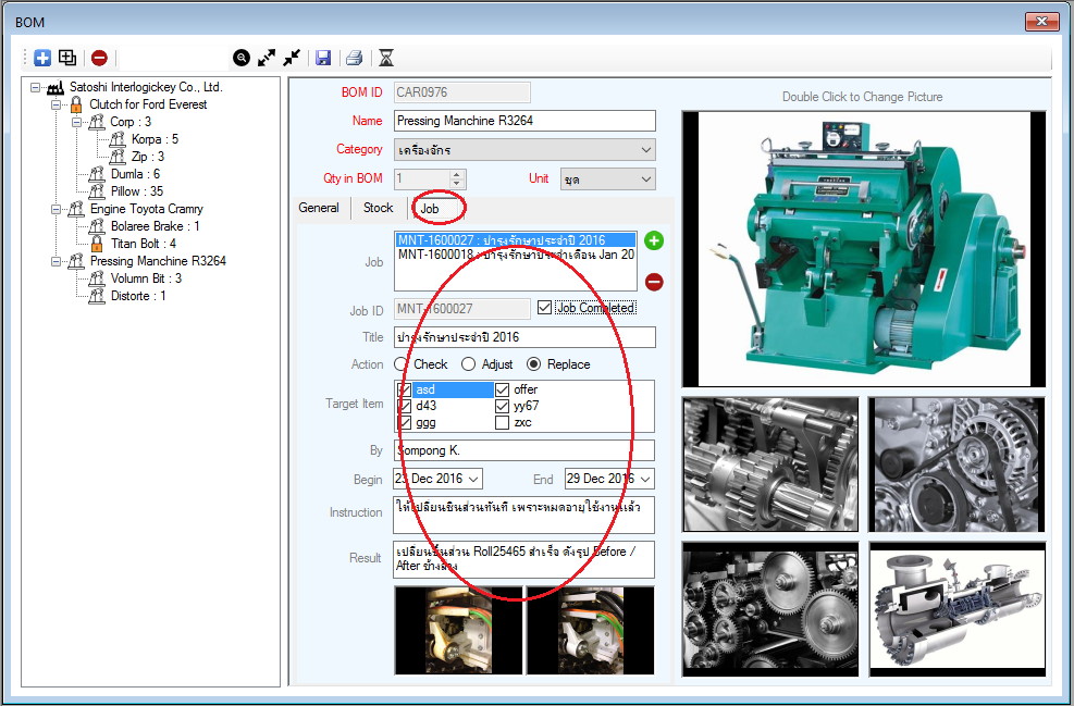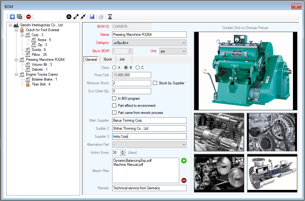 โดย โปรแกรม sMaint ที่ถูกออกแบบมาให้สามารถใช้งานได้ง่าย และครอบคลุม โดยมีฟังก์ชั่นการจัดการด้านข้อมูลเครื่องจักรที่ละเอียด ตั้งแต่ รหัสหมายเลขเครื่องจักร ราคาเครื่องจักร หน้าที่การใช้งาน อะไหล่ ชิ้นส่วนที่มีในสต็อก วันเวลาที่ซ่อมบำรุงครั้งล่าสุด และอื่นๆ อีกมากมาย อีกทั้งยังสามารถแนบไฟล์เอกสารอย่างเช่นไฟล์ PDF หรือไฟล์รูปภาพ เพื่อประกอบกับข้อมูล ทำให้มองเห็นภาพได้ชัดเจนมากยิ่งขึ้น