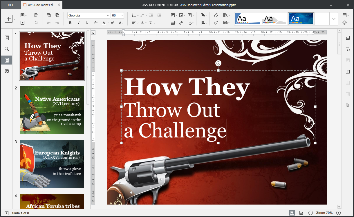 โดย โปรแกรม AVS Document Editor ตัวนี้ เป็นโปรแกรมที่สามารถเปิดไฟล์ แก้ไข และ จัดการทั้งไฟล์ในรูปแบบทั้ง โปรแกรม Word โปรแกรม Excel และ โปรแกรม Powerpoint ได้ในโปรแกรมเดียว รองรับไฟล์นามสกุลหลากหลาย ซึ่งนอกจาก .DOC, .XLS หรือ .PPT อีกทั้งยังสามารถรองรับไฟล์รูปแบบอื่นๆ อีกมากมายด้วยเช่นกัน ไม่ว่าจะเป็น .TXT, .ODT, .RTF ฯลฯ รวมทั้งบันทึกไฟล์เป็น .PDF หรือ .HTML ได้อีกด้วย
