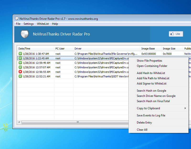 โดยตัวผู้ใช้งานสามารถใช้ โปรแกรมจัดการไดร์เวอร์ Driver Radar Pro ในการค้นหาข้อมูลทั่วไปของไดร์ฟเวอร์ที่ติดตั้งอยู่ในเครื่อง ผ่าน Google ได้ หรือจะค้นหาผ่าน VirusTotal ว่ามันเป็นไวรัสแอบแฝงหรือเปล่า ก็ได้เช่นกัน และยังสร้างรายการที่ปลอดภัย (WhiteList) เพื่อแยกรายการไดร์เวอร์ (Driver) ออกมาเก็บไว้ได้ นอกจากนี้ยังสามารถใช้ปิดการทำงานของ Kernel Drivers ได้อีกด้วย หรือจะก็อปปี้ไว้ก่อนเพื่อป้องกันความผิดพลาดก็ได้ เรียกได้ว่ามันเป็นโปรแกรมที่ใช้จัดการเกี่ยวกับไดร์เวอร์ที่มีฟีเจอร์ค่อนข้างครบวงจรเลยทีเดียว