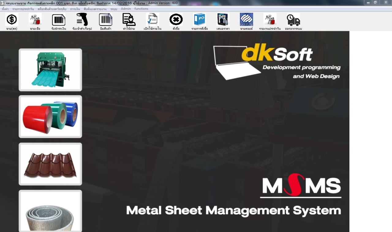 MSMS (โปรแกรมบริหารจัดการ โรงงานผลิตแผ่นหลังคาเหล็ก) : สำหรับโปรแกรมนี้มีชื่อว่า โปรแกรม หลังคาเหล็ก หรือ โปรแกรม MSMS เป็นชื่อที่ย่อมาจากคำว่า "Metal Sheet Management System" มันเป็นโปรแกรมที่ออกแบบมาเพื่อใช้ บริหารจัดการระบบของโรงงานผลิตแผ่นหลังคาเหล็ก (Metal Sheet) โดยเฉพาะ เหมาะที่จะใช้งานกับโรงรีด โดยมีระบบรองรับการขายทั้งเงินสด เงินเชื่อ จัดการสต็อกสินค้า คำนวณสต็อก ความยาวคงเหลือ ม้วนคอยล์จากการสั่งตัด และอื่นๆ ได้อย่างละเอียด