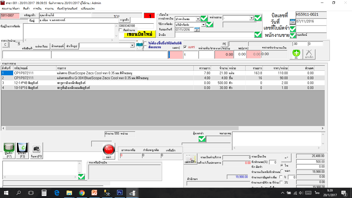 รูปตัวอย่าง Screenshot การใช้งานของโปรแกรมหลังคาเหล็ก MSMS