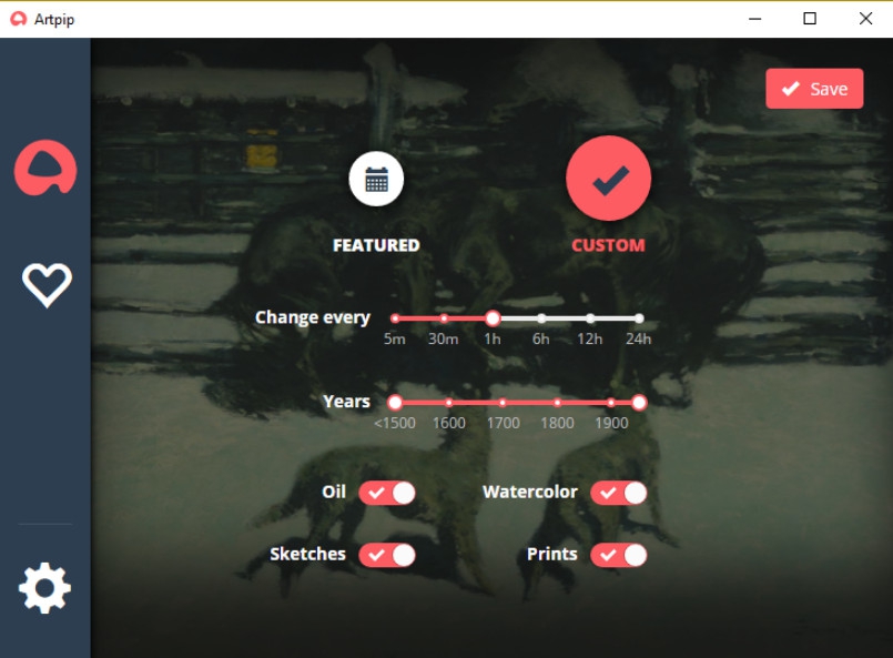 โดยโปรแกรม Artpip สามารถที่จะตั้งค่าการแสดงผลของภาพผลงานศิลปะได้อย่างละเอียด เช่น ต้องการตั้งค่าให้รูปภาพหน้าจอปรับเปลี่ยนเองโดยอัตโนมัติในทุกๆ กี่นาที กี่ชั่วโมง หรือ กี่วัน รวมทั้งยังสามารถกำหนดเลือกยุคสมัยของผลงานศิลปะ เพื่อให้โปรแกรมแสดงรูปภาพเฉพาะในช่วงยุคสมัยนั้นๆ ที่เราต้องการก็ได้เช่นกัน