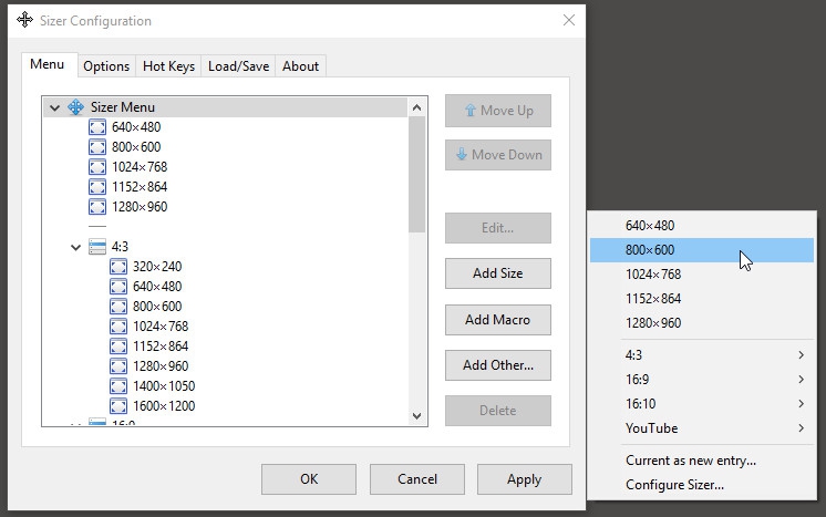 Sizer (โปรแกรม Sizer ปรับขนาด ตำแหน่งการแสดงผล ของหน้าต่าง Windows) : สำหรับโปรแกรมนี้มีชื่อว่า โปรแกรม Sizer มันเป็นโปรแกรมขนาดเล็กๆ ที่ถูกออกแบบมาเพื่อ ใช้กำหนดขนาด (Configure Sizer) หรือ เลือกขนาดหน้าต่างวินโดวส์ (Desktop Windows) ซึ่งเรามักใช้งานอยู่เป็นประจำ โปรแกรมสามารถกำหนดขนาดของกรอบหน้าต่างวินโดวส์ โดยอ้างอิงจากค่าความละเอียดของหน้าจอ รวมถึงอัตราส่วนของจอภาพ (Aspect Ratio) ได้ เช่น ถ้าหน้าจอเรามีความละเอียดอยู่ที่ 1280 x 960 px แล้วเราอยากให้ขนาดของหน้าต่าง Windows ที่เปิดขึ้นมาในทุกๆ ครั้ง มีขนาดเพียงครึ่งหนึ่งของหน้าจอ ก็เพียงตั้งค่าผ่านโปรแกรมให้ Windows Configure Size มีขนาดเป็น 640 x 480 ก็จะได้ผลลัพธ์ตามที่ต้องการ
