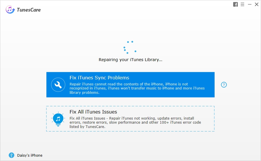 รูปภาพ Screenshot ประกอบการใช้งานของโปรแกรม โปรแกรมแก้ไขปัญหา iTunes ฟรี TunesCare เพิ่มเติม