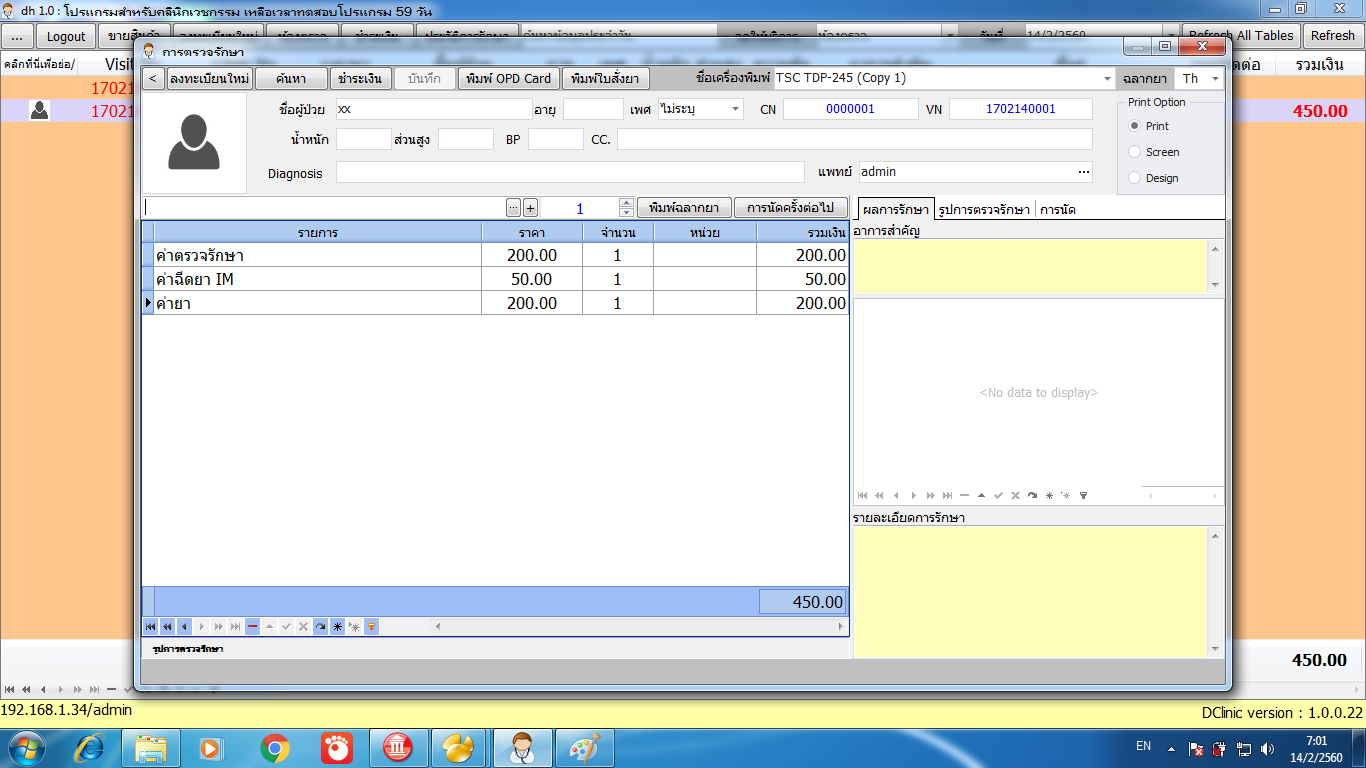 รูปภาพตัวอย่าง Screenshot การใช้งานของโปรแกรม DClinic