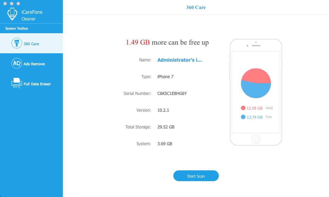 This program is called "iCareFone Cleaner". It is a a professional iOS optimizer. It helps you check your iOS device health and then optimize your iPhone, iPad, iPod system to make your iOS devices at the peak performace. Have you been troubled with slow iPhone/iPad/iPod? Does iPhone/iPad/iPod freeze up frequently? Generally speaking, when iOS device is occupied with a big pile of junk files, all apps will run rather slow.