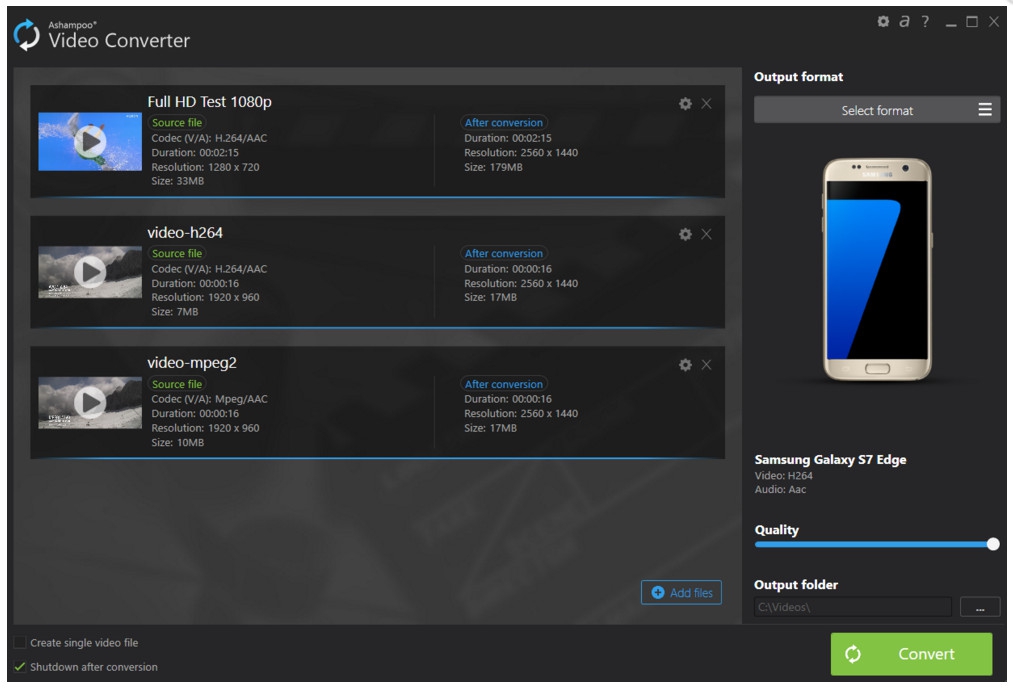 นอกจากนี้ โปรแกรมแปลงไฟล์วิดีโอ Ashampoo Video Converter ยังใช้ระบบเทคโนโลยีในการแปลงไฟล์ที่ทันสมัย อย่าง Intel HD Graphics และ NVENC ทำให้สามารถแปลงไฟล์วิดีโอที่มีขนาดไฟล์ใหญ่ๆ ที่ปกติต้องใช้เวลาแปลงไฟล์นานๆ ให้เสร็จสิ้นได้รวดเร็วมากขึ้น
