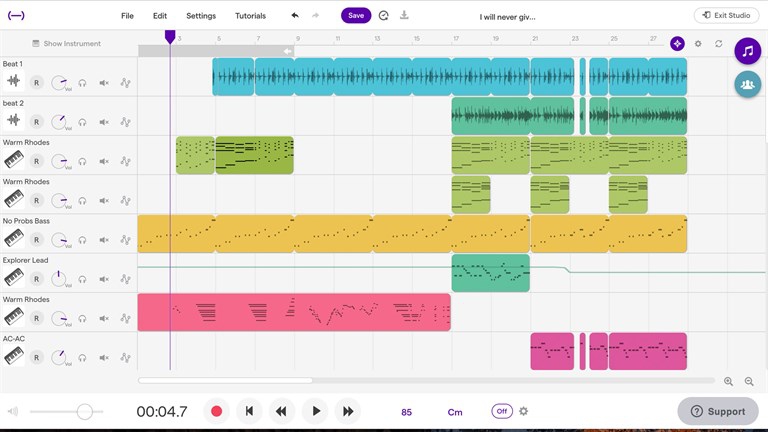 สำหรับการใช้งาน โปรแกรมแต่งเพลงสร้างเสียงดนตรี Soundtrap หากคุณต้องการสร้างเพลงสักเพลงหนึ่ง ไม่ว่าจะขณะอยู่ที่บ้าน หรือนั่งรถไปทำงาน ใช้งานผ่านมือถือหรือคอมพิวเตอร์ได้ เข้าถึงข้อมูลไฟล์ที่สร้างค้างไว้อยู่ก็สามารถทำได้ เลือกสร้างโปรเจคเสียงเพลง ใส่ไลน์เสียง เลือกจังหวะ ทำนอง เสียงเครื่องดนตรีประเภทต่างๆ เช่นกลอง / เปียโน / กีตาร์ นอกจากนี้ยังสามารถอัดเสียงร้องเข้าไปได้ เข้าถึงและจัดการแก้ไขได้เหมือนโปรแกรมที่ติดตั้งบนเครื่อง มีเครื่องมือปรับจูนคีย์ ย่านเสียง มิกซ์เสียง อีกทั้งคุณยังสามารถอัดเพลง ใส่เอฟเฟคและฟังเสียงร่วมกันพร้อมๆ กับเพื่อนๆ ได้ หากใครสนใจก็สามารถดาวน์โหลดไปใช้งานได้เลยทันที