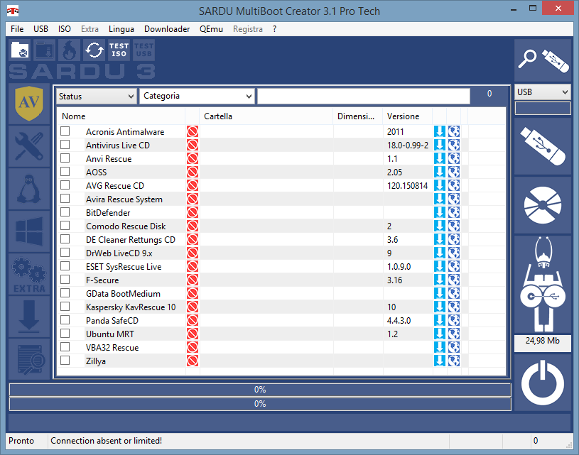 SARDU (โปรแกรม SARDU รวมโปรแกรมป้องกันไวรัส แบบ USB หรือ DVD Boot ฟรี) : สำหรับโปรแกรมนี้มีชื่อว่า โปรแกรม SARDU พัฒนาโดยทีมผู้พัฒนาจาก ประเทศอิตาลี มันเป็นโปรแกรมประเภท "Multiboot" รองรับทั้งในรูปแบบของ USB หรือ DVD สำหรับระบบปฏิบัติการ Windows และ Linux ที่จะเข้ามาช่วยซ่อมแซม ป้องกัน หรือ กำจัดไวรัส บนเครื่องคอมพิวเตอร์ของคุณ ในกรณีที่ เครื่องคอมพิวเตอร์ถูกไวรัสร้ายแรง จนไม่สามารถ เปิดใช้งานโปรแกรมป้องกันไวรัส (Virus) ที่ติดตั้งอยู่ เพื่อทำความสะอาดได้