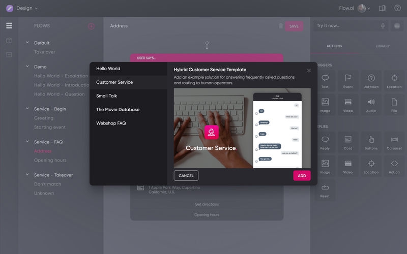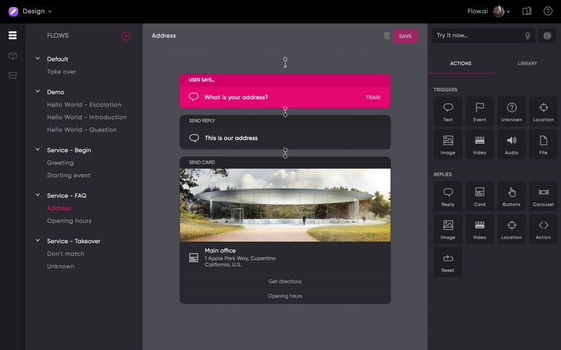 Flow.ai offers an intuitive drag and drop interface and is powered by state of the art NLP. You can easily build sophisticated bots in multiple languages, across multiple platforms.