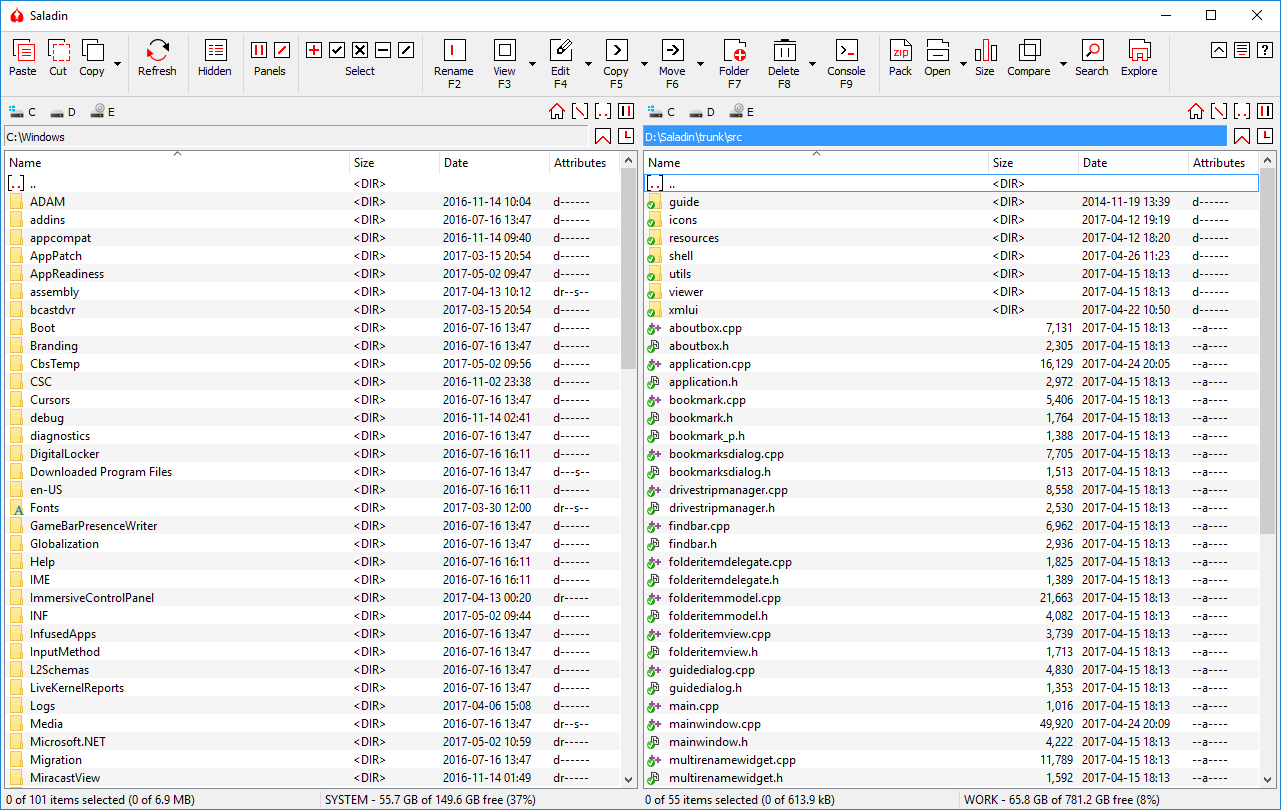 แต่สิ่งที่พิเศษกว่าสำหรับ โปรแกรม Saladin นี้ คือคุณสามารถเปิดหน้าต่าง เครื่องมือ จัดการไฟล์ได้พร้อมกัน ทั้งสองหน้าจอ ในคราวเดียว นั่นเอง ช่วยประหยัดเวลาในการทำงานได้มากยิ่งขึ้น สามารถดูรายการ ของไฟล์ภายในเครื่องทั้งสองหน้าจอได้ทันที ไม่ต้องเปิดหน้าต่าง สลับไปมา เพียงแค่เปิดโปรแกรมทีเดียว (คล้ายกับ โปรแกรมรับส่งไฟล์ FTP) ก็สามารถทำงานได้พร้อมกันทันที สะดวกสุดๆ
