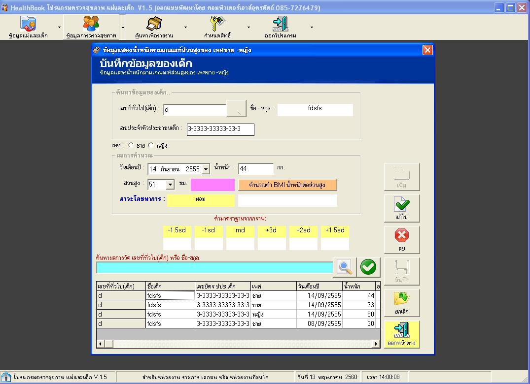 HealthBook (โปรแกรม HealthBook ตรวจสุขภาพแม่และเด็ก BMI) : สำหรับโปรแกรมนี้มีชื่อว่า โปรแกรม HealthBook มันเป็นโปรแกรมที่ใช้ในการบันทึกข้อมูล ประวัติการตรวจสุขภาพของแม่และเด็ก เหมาะจะใช้ในระบบงานด้านสถานพยาบาล อย่าง โรงพยาบาลส่งเสริมสุขตำบล อำเภอ จังหวัด หรือ หน่วยงานเอกชน ก็สามารถใช้งานได้เช่นกัน อำนวยความสะดวกด้านการเก็บประวัติได้ดีมากๆ เลยทีเดียว