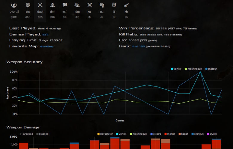 รูปภาพ Screenshot การจัดเก็บสถิติการเล่น ภายในเกมส์ยิง Xonotic