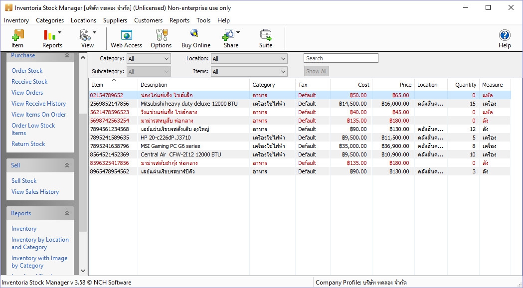 รูปตัวอย่าง Screenshot การใช้งานจริงของ โปรแกรม จัดการคลังสินค้า ใช้งานง่าย Inventoria Stock Manager
