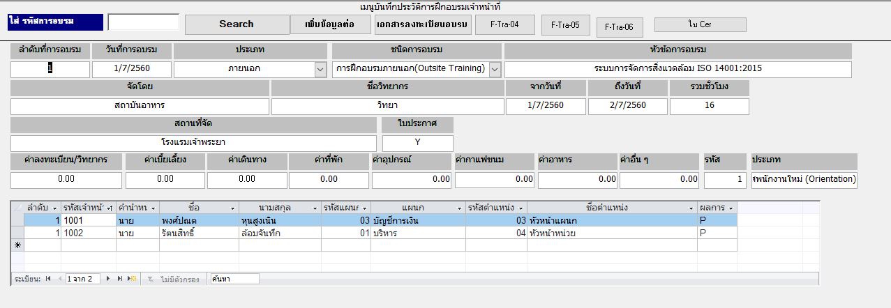 ภาพตัวอย่างของ เมนูบันทึกประวัติการฝึกอบรมเจ้าหน้าที่ ของ โปรแกรมบันทึกประวัติอบรม Training Management System