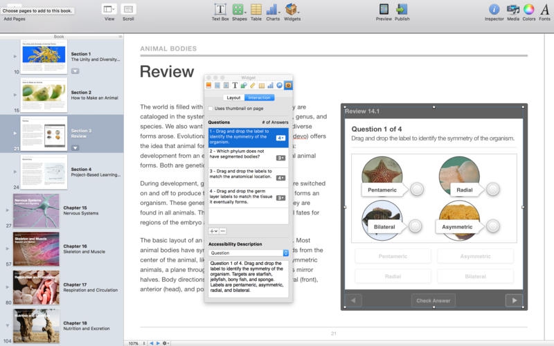 Use Multi-Touch widgets to include interactive photo galleries, movies, Keynote presentations, 3D objects, and more. Preview your book on your iOS device or Mac at any time. Then submit your finished work to the iBooks Store in a few simple steps. And before you know it, you’re a published author.