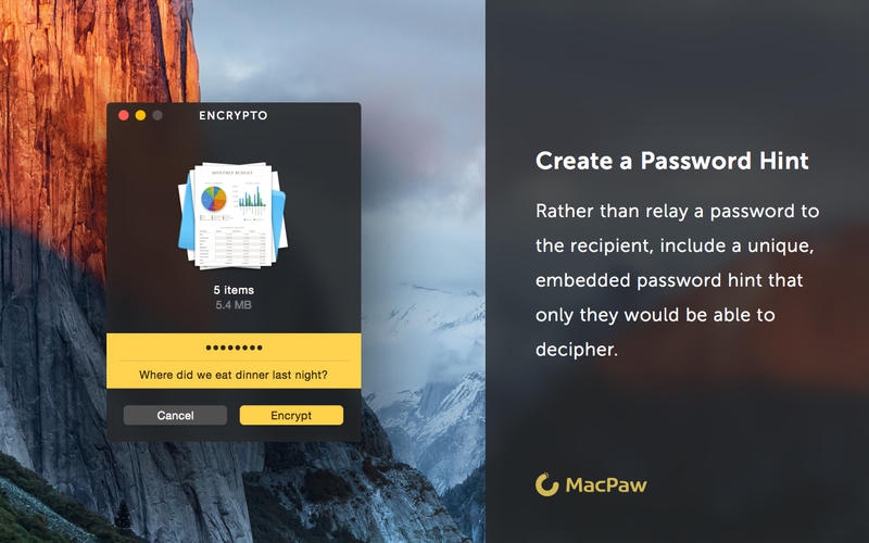 สำหรับ โปรแกรมเข้ารหัสส่งต่อไฟล์ Encrypto ตัวนี้ เหมาะสำหรับคนที่ต้องการส่งต่อไฟล์เอกสาร ที่มีความสำคัญ ไม่อยากให้ผู้อื่นเปิดดูไฟล์ หรือ ขโมยไฟล์นำไปใช้ง่ายๆ คุณสามารถใช้งานโปรแกรมนี้ เพื่อเพิ่มความปลอดภัยของไฟล์ ให้ปลอดภัยมากยิ่งขึ้น สามารถตั้งรหัสผ่าน พร้อม ใส่คำใบ้ (Hint) ได้ ยกตัวอย่างเช่น เราใส่รหัสผ่าน และ ตั้งคำใบ้ว่า "ร้านที่เราชอบไปทานข้่าวด้วยกันบ่อยๆ" หรือ "เมื่อคืนเราไปทานข้าวด้วยกันที่ไหน" เป็นต้น เมื่อคุณส่งต่อไฟล์ให้เพื่อนคุณ เพื่อนคุณก็จะรู้ว่ารหัสผ่านคืออะไร และ คนอื่นไม่สามารถเข้าถึงข้อมูลนั้นๆ ของไฟล์ได้หากไม่รู้รหัสผ่าน นั่นเอง