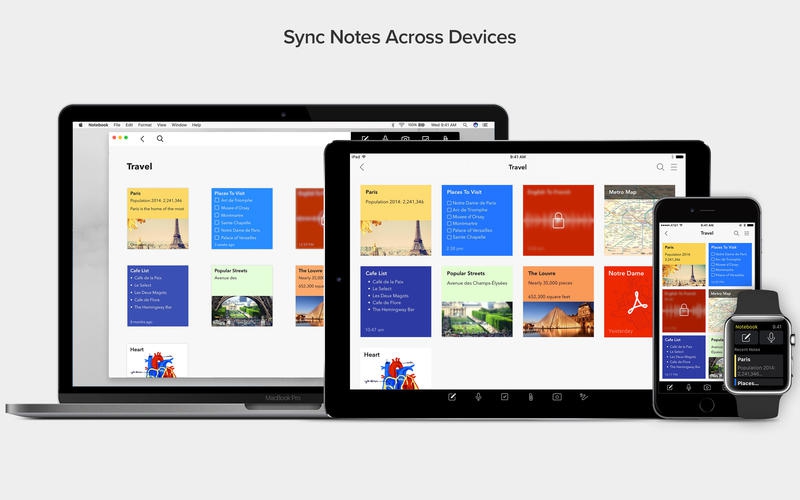สำหรับ โปรแกรมเปรียบจดบันทึกสมุดโน้ต Notebook คุณสามารถดาวน์โหลดมาติดตั้งใช้งานได้บนเครื่อง Mac ระบบปฏิบัติการ macOS เวอร์ชัน 10.11 El Capitan จดถึงรุ่นล่าสุด รองรับการทำงานบน Trackpad และ Touch Bar สั่งการได้ นอกจากนี้ โปรแกรมนี้ยังสามารถใช้งานข้ามอุปกรณ์ได้ ซิงค์ข้อมูลร่วมกับมือถือระบบ iOS และ Android ได้อีกด้วย หากใครสนใจก็สามารถดาวน์โหลดไปใช้งานกันได้เลยฟรีๆ ไม่เสียตัง 100% ครับ