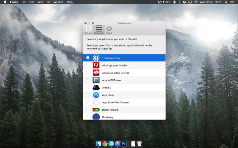 และนอกจากนี้แล้ว โปรแกรม CopyClip ตัวนี้ ก็ยังสามารถตั้งรายชื่อยกเว้น (Exceptions) หรือที่เรียกว่า Backlist สำหรับโปรแกรมที่ไม่ต้องการให้โปรแกรม Copyclip นี้บันทึกข้อความลงบนคลิปบอร์ดได้ ยกตัวอย่างเช่น โปรแกรมที่จัดเก็บรหัสผ่านของเครื่อง เป็นต้น หากใครสนใจก็สามารถดาวน์โหลดไปใช้งานบนเครื่อง Mac เวอร์ชัน 10.7 ขึ้นไป ได้เลยฟรีๆ