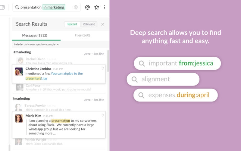 ด้วย โปรแกรมสื่อสารทีมงานองค์กร Slack ยกตัวอย่างเช่น คุยงานกันในโปรแกรมแชท แต่ส่งไฟล์ผ่านช่องทางอื่นๆ พอมีหลายๆ คนทำให้เกิดความสับสนในการทำงาน หากไม่มีระบบในการใช้งานต่างๆ เพราะเหตุนี้เอง ทางผู้พัฒนา Slack ได้ออกแบบโปรแกรมสำหรับสื่อสารสำหรับทีมงานและองค์การโดยเฉพาะ มาให้ใช้งานร่วมกันภายในโปรแกรมตัวเดียว ไม่ว่าจะเป็นการทำงานร่วมกันเป็นกลุ่ม องค์กรขนาดเล็ก หรือ ขนาดใหญ่ ดำเนินงานให้เสร็จลุล่วงไปด้วยดี สามารถใช้งานคุยร่วมกัน ได้ทุกที่ๆ คุณต้องการ อีกทั้งยังสามารถตั้งค่าการแจ้งเตือนเฉพาะส่วนที่สำคัญ เพื่อไม่ให้รบกวนการทำงาน