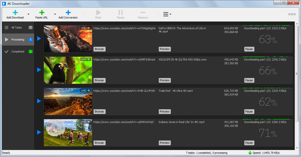 This program is called "4K Downloader". Is a simple Windows app for downloading and converting 4K and 8K Ultra HD videos from YouTube and other video sharing sites. It accelerates your downloads by up to 5 times. 4K Ultra HD is becoming more and more popular. Most new mobile phones, computers, television sets, and other electronic devices support 4K Ultra HD. Many people have also had one or more devices that support 4K UHD video playback or recording.
