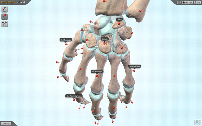 ด้วย โปรแกรมดูข้อต่อกระดูกมือ BoneBox Hand Viewer โปรแกรมนี้ สามารถดูได้แบบ 360 องศา ทุกซอกทุกมุม หมุนเปลี่ยนมุม ซูมขยาย ดูส่วนประกอบของชิ้นส่วนข้อต่อของกระดูกมือมนุษย์ อีกทั้งยังมีเครื่องมือในการเขียนอธิบาย ปักหมุด แสดงรายชื่อ ของชิ้นส่วนต่างๆ มีปากกาใช้ในการเขียนลงตัวแบบสามมิติได้ อีกด้วย สามารถใช้ร่วมกับหนังสือเรียน เขียนอธิบายชิ้นส่วนต่างๆ ทำให้เข้าใจง่าย นอกจากนี้ คุณครูยังสามารถนำโปรแกรมนี้ไปประยุกต์สอนนักเรียนภายในห้องเรียนได้อีกด้วย