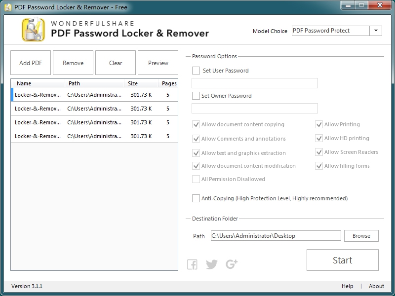 This program is called "PDF Password Locker & Remover". Is an intuitive software solution designed to help users to protect their PDF files and remove the password. With high encryption technology, users can secure and encrypt the PDF files and protect them from unauthorized access. Eight permissions could be choosed according to the users' need. Meanwhile, if users want to remove the password, just a few clicks are required to remover the user password and owner password.