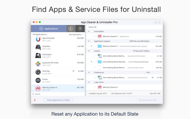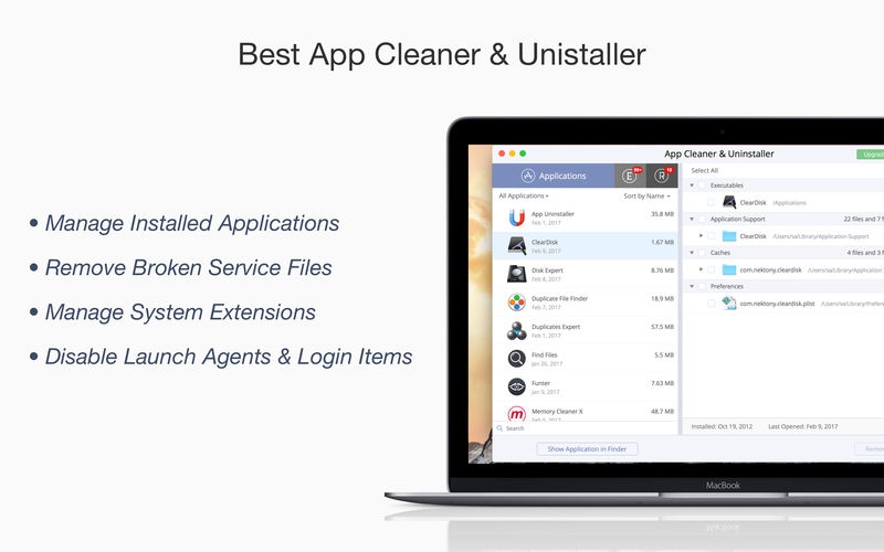 สำหรับ โปรแกรมล้างเครื่อง App Cleaner คุณสามารถลบแอปพลิเคชัน โปรแกรมต่างๆ ไฟล์ที่เกี่ยวข้อง ได้อย่างหมดจด โดยไม่เหลือไฟล์ใดๆ เพิ่มเติม สามารถ รีเซ็ต (Reset) แอปพลิเคชันที่ติดตั้งอยู่บนเครื่องให้กลับมาใช้งานได้เหมือนติดตั้งใหม่ๆ รวมไปถึงการเคลียร์และจัดการไฟล์เหลือ (Cleanup Remains) หรือไฟล์แคช (Caches) ที่ไม่ได้ใช้งาน จัดการลงถังขยะให้หมด คุณสามารถดาวน์โหลดไปติดตั้งใช้งานบนระบบปฏิบัติการ macOS เวอร์ชัน 10.9 Mavericks เป็นต้นไป หากใครสนใจก็สามารถดาวน์โหลดไปใช้งานกันได้เลยฟรีๆ