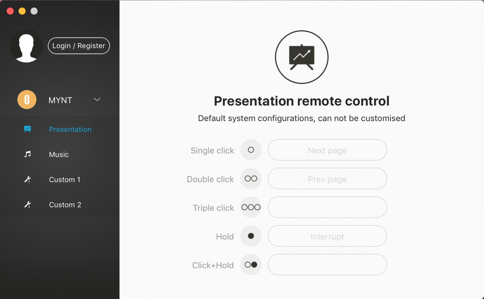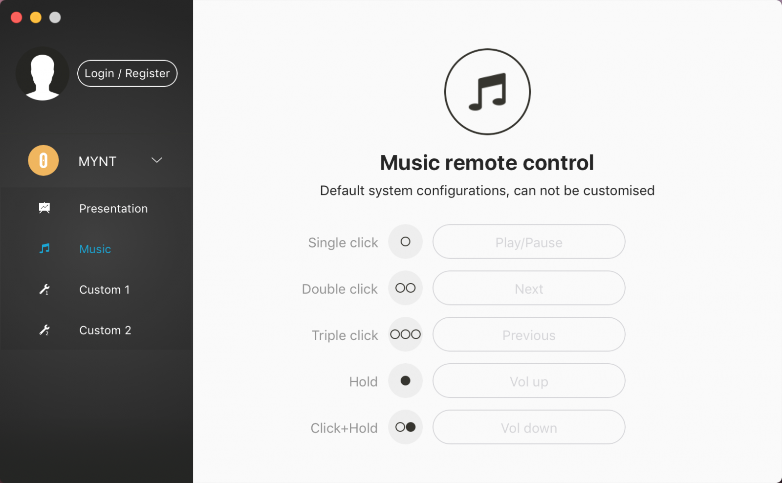 นอกจากนี้ โปรแกรมป้องกันของหาย MYNT Tracker ยังสามารถใช้งานร่วมกับอุปกรณ์ MYNT เป็นรีโมทควบคุมเพลง สั่งการ เลื่อนเพลง หยุดเพลง ได้ และใช้เป็นรีโมทสำหรับพรีเซ้นต์ นำเสนองานผ่านโปรแกรม Keynote ได้อีกด้วย นอกจากจะเป็นอุปกรณ์สำหรับตามหาของหาย ก็ยังใช้เป็นอุปกรณ์รีโมทควบคุมได้อีก โปรแกรมนี้รองรับการตั้งค่า การใช้งานรูปแบบอื่นๆ หากเรามีอุปกรณ์ MYNT หลายตัวก็สามารถจัดการและควบคุมบนเครื่อง Mac ได้ หากใครสนใจก็สามารถดาวน์โหลดไปใช้งานกันได้เลย