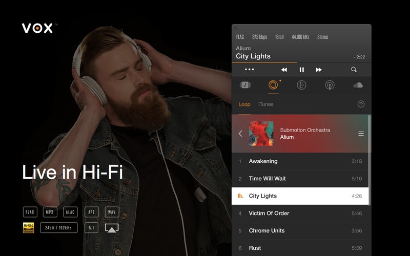 นอกจากนี้ โปรแกรมเล่นเพลง VOX ตัวนี้ สามารถเล่นเพลงร่วมกับ Playlist ใน โปรแกรม iTunes ของคุณได้ และรองรับการเล่นไฟล์เพลงยอดนิยมมากมาย อย่างไฟล์ FLAC , ALAC ไฟล์ยอดนิยม อย่าง MP3 หรือ CUE APE และ M4A รองรับการเล่นไฟล์เพลงคุณภาพสูงระดับ Hi-Res ได้สูงถึง 24 Bits / 192 kHz ซึ่งสูงกว่าปกติถึง 4 เท่า เลยด้วยกัน สัมผัสประสบการณ์ฟังเพลงใหม่ๆ ได้เสียงดีกว่าเดิม ไม่ว่าใครก็ต้องลอง โปรแกรมนี้รองรับการใช้งานบนระบบปฏิบัติการ macOS 10.10 Yosemite เป็นต้นไปจนถึงเวอร์ชันล่าสุด หากใครสนใจก็สามารถดาวน์โหลดมาใช้งานบนเครื่องได้ทันทีฟรีๆ