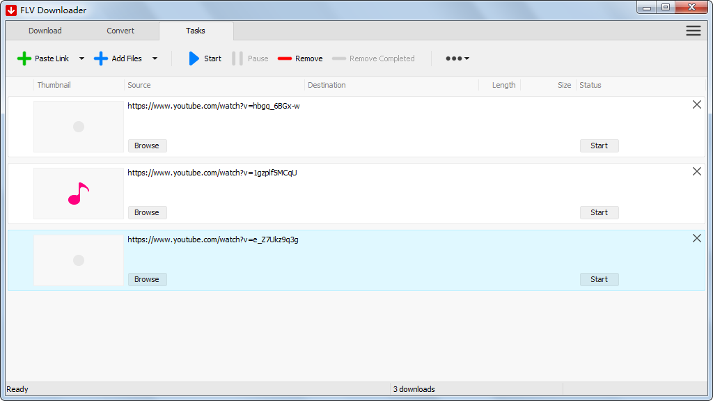 ด้านการใช้งานของโปรแกรม FLV Downloader ก็โหลดวิดีโอได้แบบง่ายๆ ใน 3 ขั้นตอน แค่เลือกหัวข้อว่าจะแปลง (Convert) หรือโหลด (Download) - กดปุ่ม Paste Link (สำหรับโหลด) หรือ Add Files (สำหรับแปลง) - แล้วกดปุ่ม Start เพียงเท่านี้ก็จะเริ่มกระบวนการดาวน์โหลด หรือ แปลงไฟล์วิดีโอแล้ว ผู้ใช้ไม่ต้องทำอะไรต่อเลย รอจนเสร็จจากนั้นก็กดปุ่ม Preview เพื่อดูตัวอย่างได้เลย หรือถ้าอยากจะหาไฟล์ก็แค่กดปุ่ม Browse มันก็จะแสดงโฟลเดอร์ที่เก็บวิดีโอให้ทันที