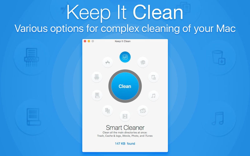 Keep It Clean (โปรแกรม Keep It Clean ทำให้เครื่องสะอาดอยู่ตลอดเวลา บน Mac) : สำหรับโปรแกรมนี้มีชื่อว่า โปรแกรม Keep It Clean เป็นโปรแกรมสำหรับทำความสะอาดเครื่อง ขจัดไฟล์ขยะ ไฟล์ข้อมูลที่ไม่ได้ใช้งาน ด้วยโปรแกรมนี้ คุณสามารถเคลียร์เครื่อง Mac ของคุณ ให้สะอาดอยู่ตลอดเวลาสมดังชื่อ โดยเลือกลบไฟล์ขยะ รูปแบบต่างๆ ทั้งไฟล์รูปภาพ ไฟล์วิดีโอ ไฟล์อื่นๆ หรือ ไฟล์ที่ซ้ำกัน ช่วยให้เครื่องของคุณมีเนื้อที่เพิ่มขึ้น ค้นหาไฟล์ขนาดใหญ่ภายในเครื่อง ที่ไม่ได้ใช้งานแล้ว คุณสามารถลบได้ทันที พร้อมเคลียร์ แคช ไฟล์ในถังขยะ ไฟล์ log ไฟล์จาก iTunes ได้อย่างสะดวกและรวดเร็วมากยิ่งขึ้น